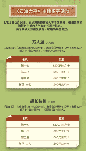 除了“油王”争霸赛,,,精英主播招募活动亦同步开启!!!!赛事分时长奖和人气奖,,,奖励同样丰厚!!