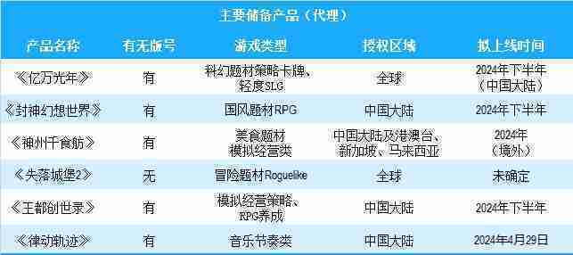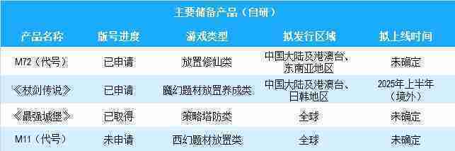 公司有多款储备产品,,,涵盖放置类、、策略类、、RPG、、、Roguelike等多元化游戏品类,,,,储备的主要自研和代理产品如下::